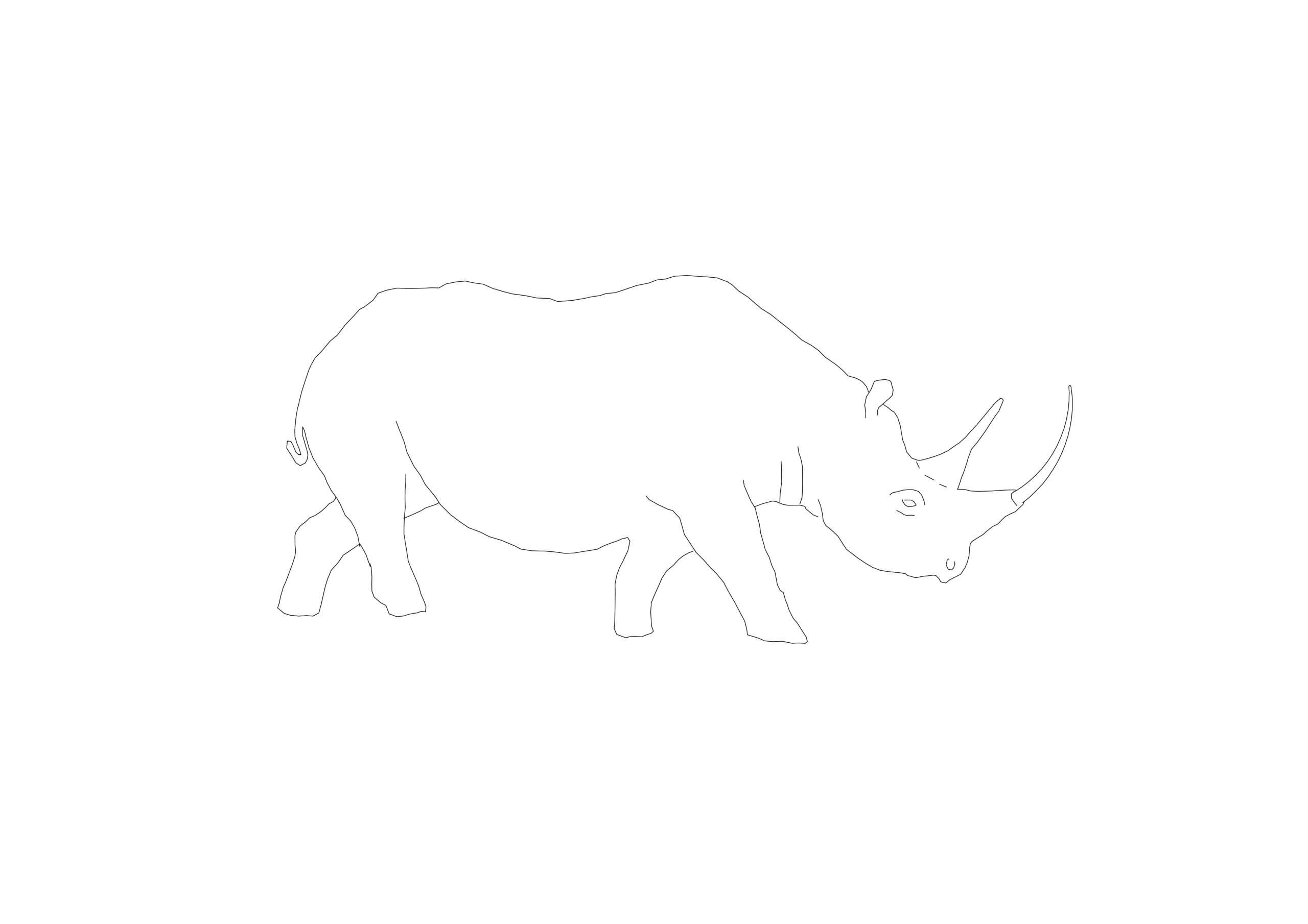 A more compact rhinoceros silhouette, ideal for representing smaller individuals or different species within a habitat plan. High-fidelity linework ensures professional quality in architectural presentations and site documentation.